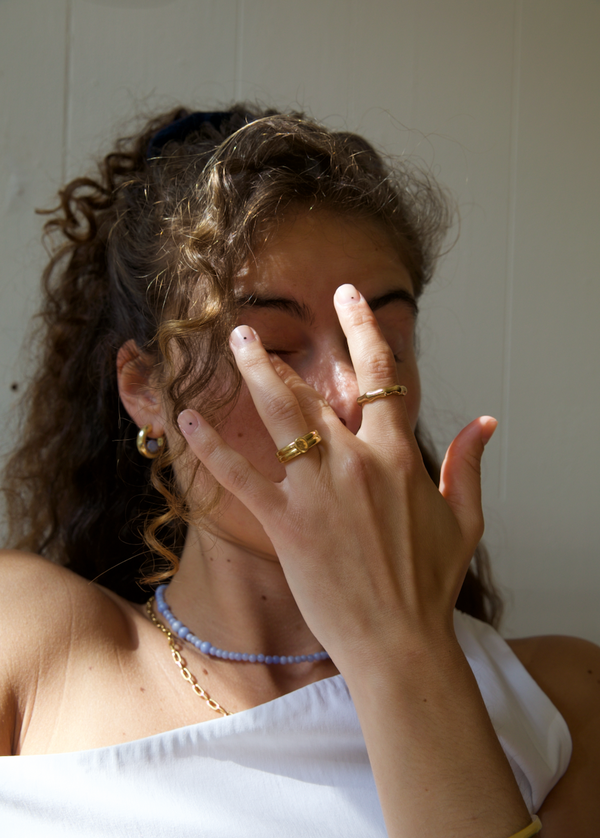 Mix and match this look with organic shaped golden rings, gold and silver rings sets, an elegant chain bracelet and you're ready for the day.