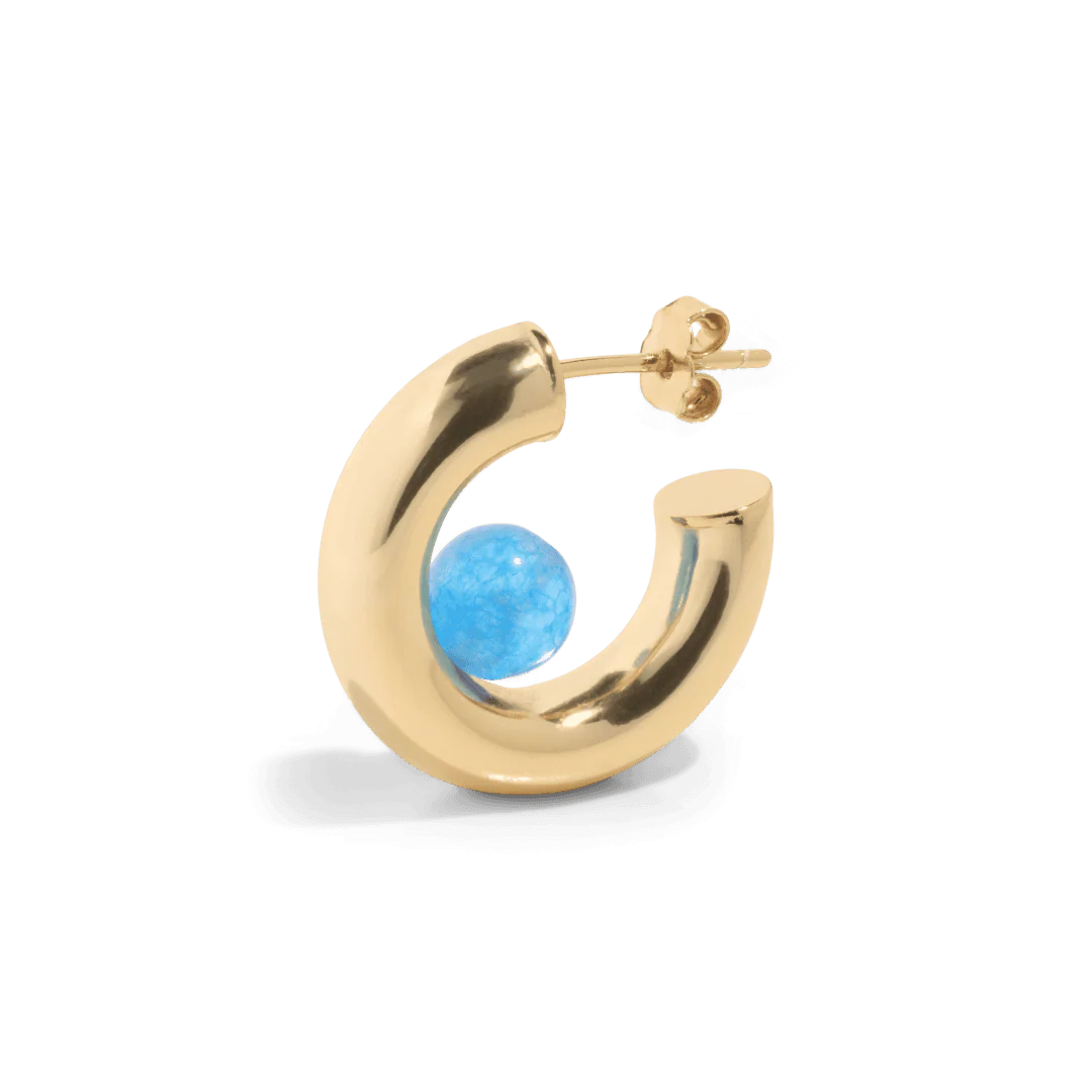 THE YUNA HOOPS – BLUE QUARTZ Shop this pair of gold hoops earring without guilt as this item is ethically crafted in our Portugal atelier. Elevate your everyday style with these gold hoops that express your inner confidence.