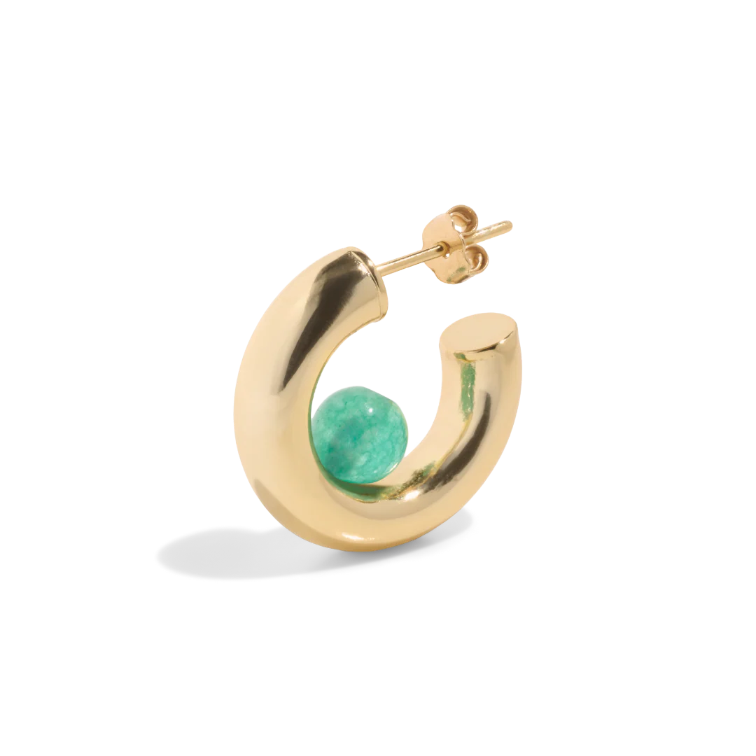 THE YUNA HOOPS – GREEN QUARTZ Shop these gold hoop earrings for everyday wear. Elevate your daily look with these gold hoops that express your quiet elegant confidence in every outfit you wear.